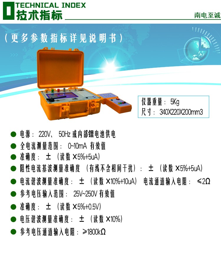>阻性電流基波測量準確度(有線不含相間干擾):±(讀數(shù)×5%+5uA)