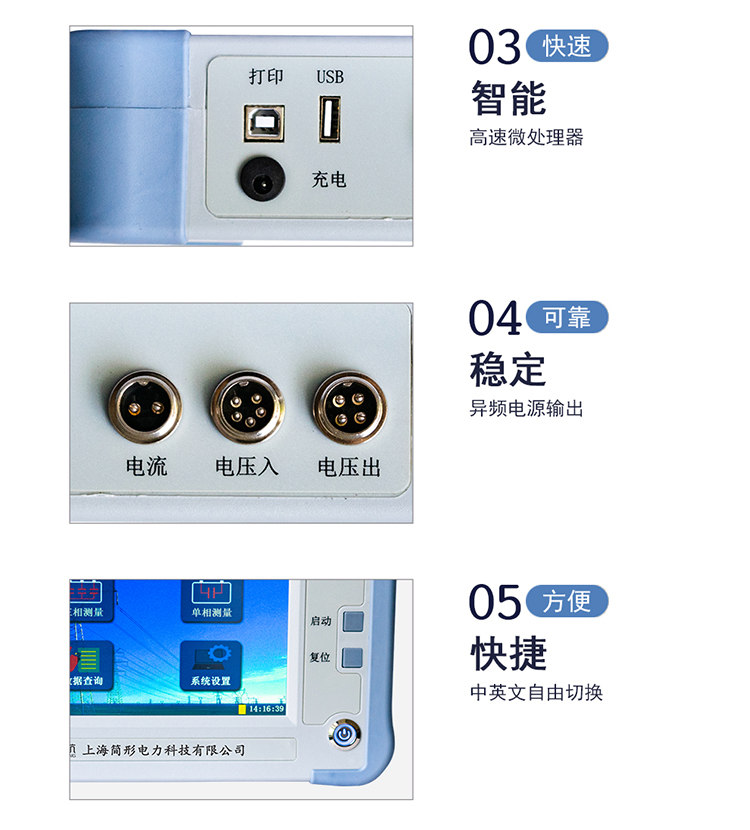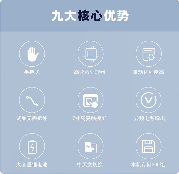 儀器使用異頻電源輸出進行測試,大大提高了現場的抗干擾能力,可在高強度磁場中進行測試而精度不受影響。