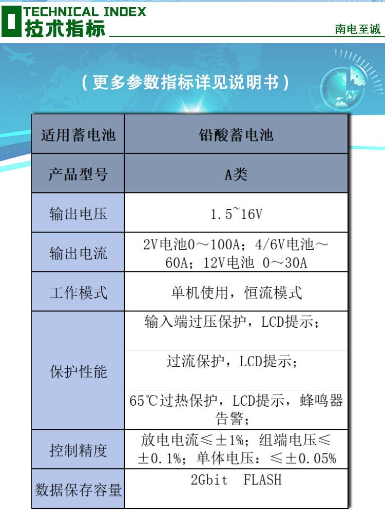 >自動保護(hù)功能,設(shè)定充放電時長到、充放電容量到、蓄電池電壓低于設(shè)定的保護(hù)電壓、負(fù)載連線出現(xiàn)異常等自動停止放電并報警,同時自動記錄停機(jī)方式。