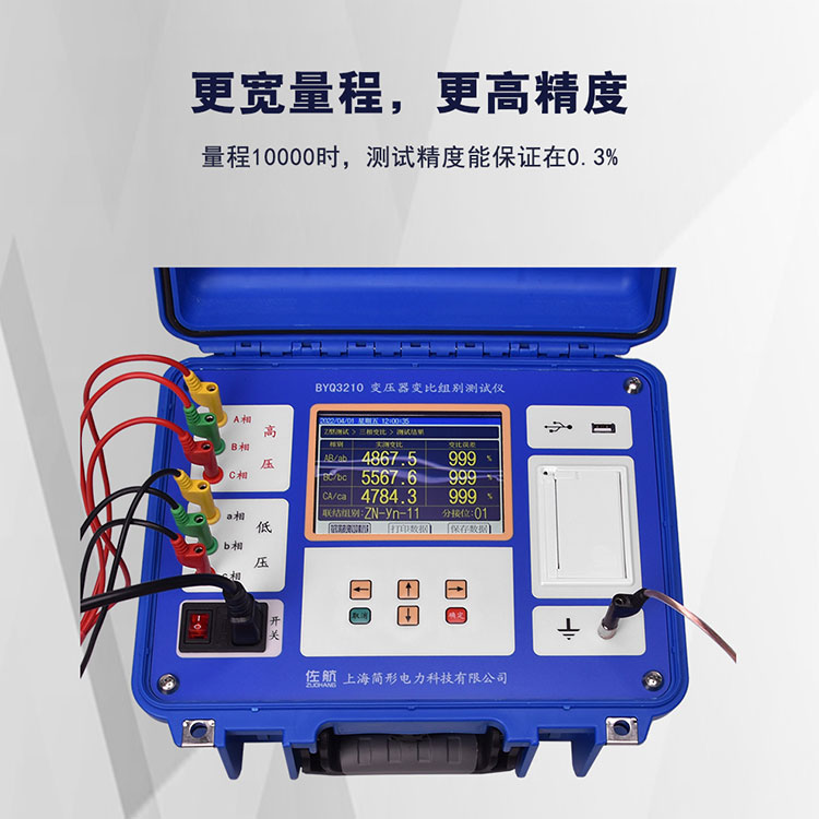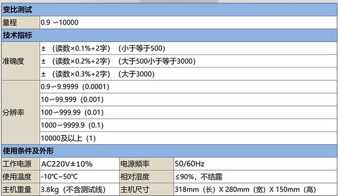3. 量程寬、精度高,變比測量范圍可達10000,且值為10000時測試精度保證0.3%。