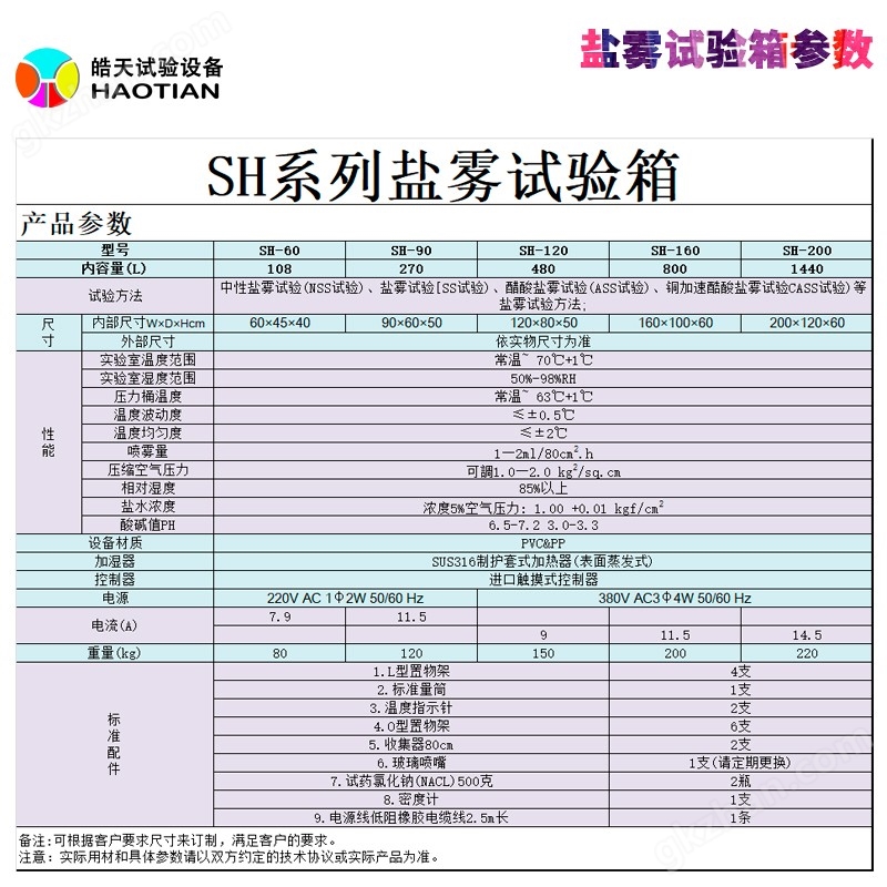 調(diào)和室:采用鈦合金加熱器,循環(huán)風(fēng)機(jī)送風(fēng)循環(huán),P.I.D 控制加熱量從而達(dá) 到溫度平衡 試驗(yàn)室:采用鈦合金發(fā)熱管,空氣直接加熱方式,P.I.D 控制加熱量從而達(dá)到溫 度平衡 壓力桶:采用鈦合金發(fā)熱管,水加熱方式,壓縮空氣進(jìn)入熱水中,以氣泡形式溢 出,P.I.D 控制加熱量從而達(dá)到恒定溫度及純凈的噴霧用氣體。