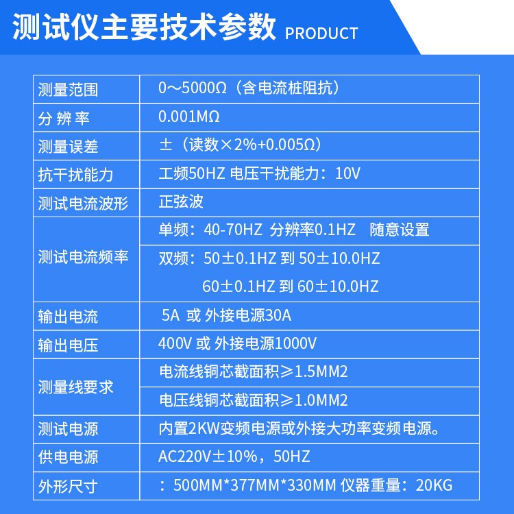 >試驗頻率:45/50/55/60/65Hz單頻;45/55Hz、55/65Hz、47.5/52.5Hz自動雙變頻