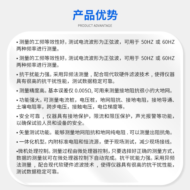 1.測量的工頻等效性好。測試電流波形為正弦波,頻率與工頻相差最小0.1Hz,大的為10Hz??捎糜?0hz或60hz兩種頻率進行測量。