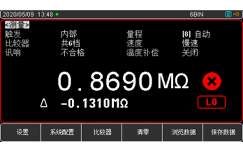 內(nèi)置10檔比較器輸出(UT3516):6個合格檔(BIN1~BIN6),3個不合格檔(NG, NG LO, NG HI,1個總合格檔(OK)。